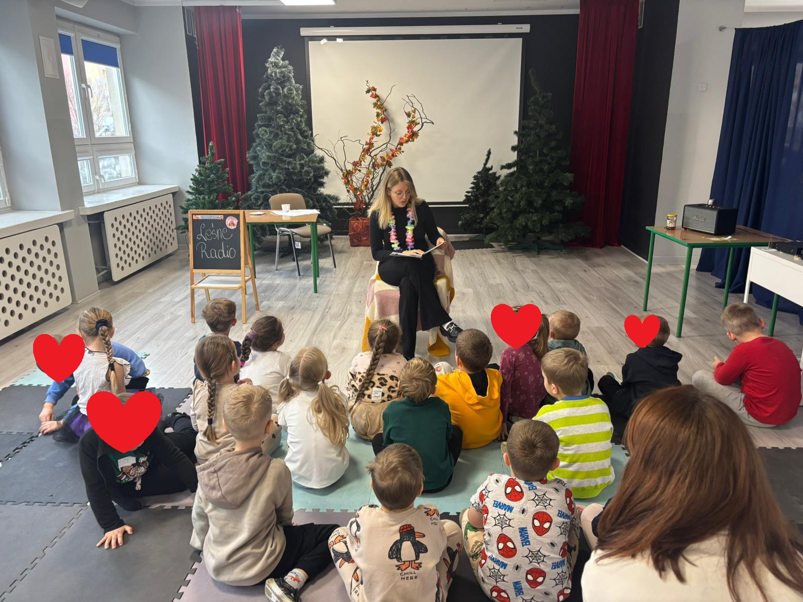 Spotkanie rozpoczęło się przedstawieniem „Leśne Radio”, opartym na autorskim scenariuszu, w którym wystąpiły m.in.: jeż, sarna, bocian, sikorka, wiewiórka i niedźwiedź. Dzięki barwnym dialogom i humorystycznym scenkom dzieci poznały różne strategie przetrwania zimy, takie jak hibernacja, gromadzenie zapasów, dokarmianie ptaków czy sezonowe wędrówki. Ważnym przesłaniem przedstawienia było również ukazanie, jak istotna jest troska o zwierzęta leśne oraz odpowiedzialne zachowania człowieka wobec przyrody. Fabuła i przesłanie przedstawienia miało tak wiele walorów edukacyjnych, że do jego obejrzenia zaproszono 9 grup przedszkolaków.