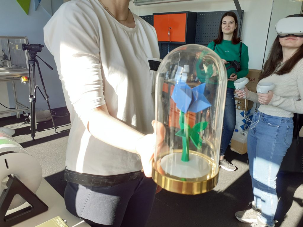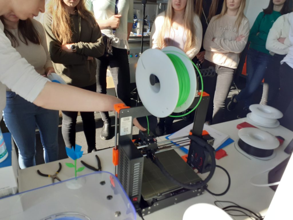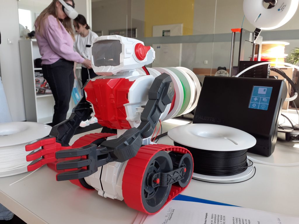 Jedną z atrakcji były zajęcia w „Laboratorium Przyszłości” prowadzone przez mgr inż. Kingę Skrzek. Obok możliwości skorzystania z gogli do VR (virtual reality, rzeczywistości wirtualnej) oraz AR (augmented reality, rozszerzonej rzeczywistości) obejrzeliśmy aparaturę do druku 3D, roboty edukacyjne.
